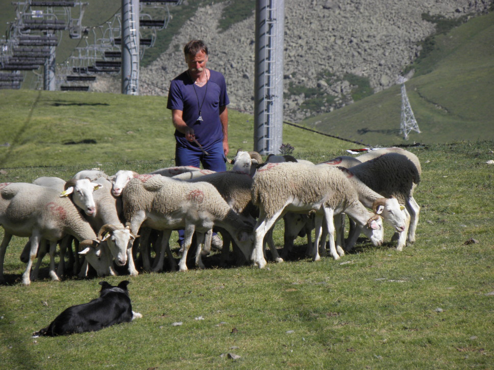 Non , ce n’est pas Wiki notre chien, mais son lointain cousin, Viper, au travail, à l’occasion d’un concours de Border Collie sur les estives du Tourmalet. Du coup notre étape s’est rallongée de 24 H . Danièle est fascinée par les évolutions des chiens, du berger et des troupeaux .Quant à Wiki il n’a pas l’air de regretter sa retraite très précoce de berger et sa reconversion en chien de compagnie