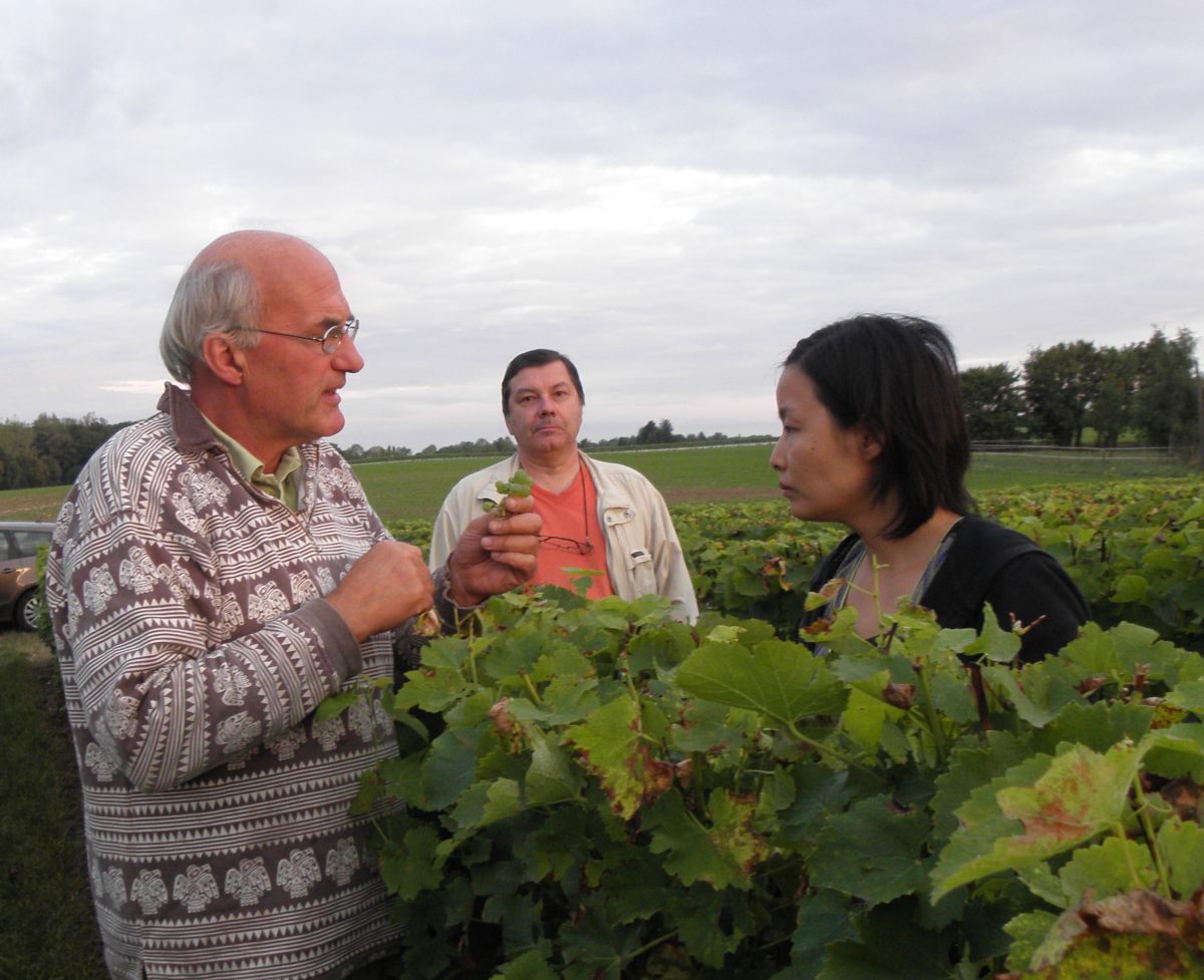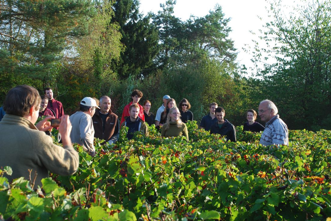 Ce samedi matin s’annonce meilleur que la veille, plongée dans la grisaille : temps sec, frais et clair, l’idéal pour les vendangeurs. Une fois les équipes installées dans les rangs, Jean fait son briefing : attention cette année aux verjus et aux grappes non mûres qui doivent être rejetés, attention au botrytis ( la pourriture grise) qui touche quelques grappes – peu nombreuses cette année.
