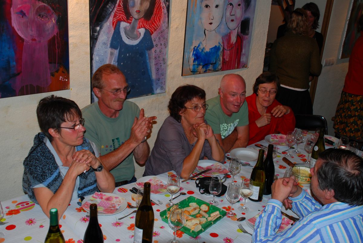 Les tables sont dressées dans les deux salles du caveau, sous les toiles d’Elise, la fille artiste de Chantal et Jean. Une expo qui a tapé dans l’oeil de Mona et Andréas qui sont finalement partis avec un tableau, tout émus de recevoir en cadeau des parents leur première oeuvre d’art.
