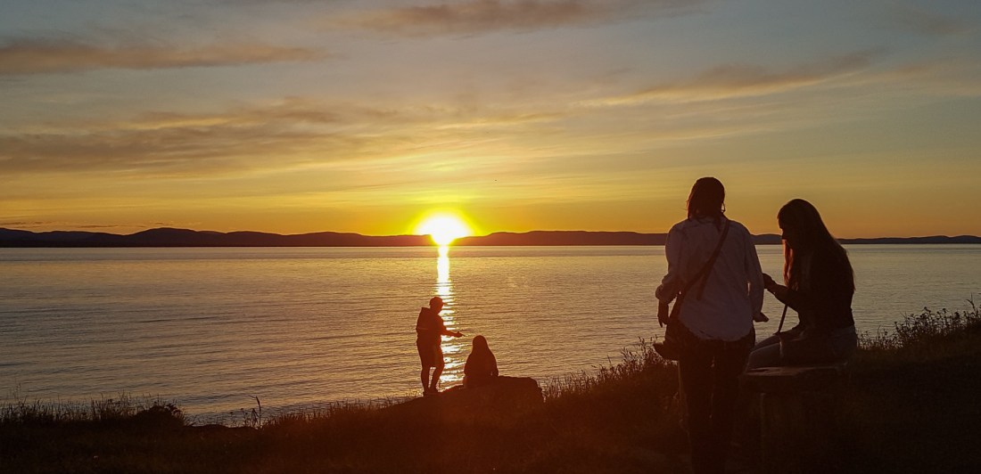Le soir nous amène vers l’embarcadère. Nous attendons le spectacle du dernier aller-retour du traversier qui fait la liaison avec Saint-Siméon, sur l’autre rive. Nous admirons le coucher de soleil (le plus beau du monde après ceux de Hawaï, proclament les dépliants touristiques !) en dégustant des sandwichs au homard dans un restaurent de motards très fréquenté.