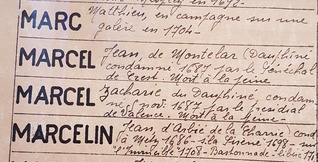 Peut-être le Jean Marcel et le Zacharie Marcel condamnés aux galères en 1687 et tous deux morts à la peine, sont-ils les frères -ou les cousins- de Gaspard ? On retrouve leurs noms au musée du désert au Mas Soubeyran Mialet à Anduze: