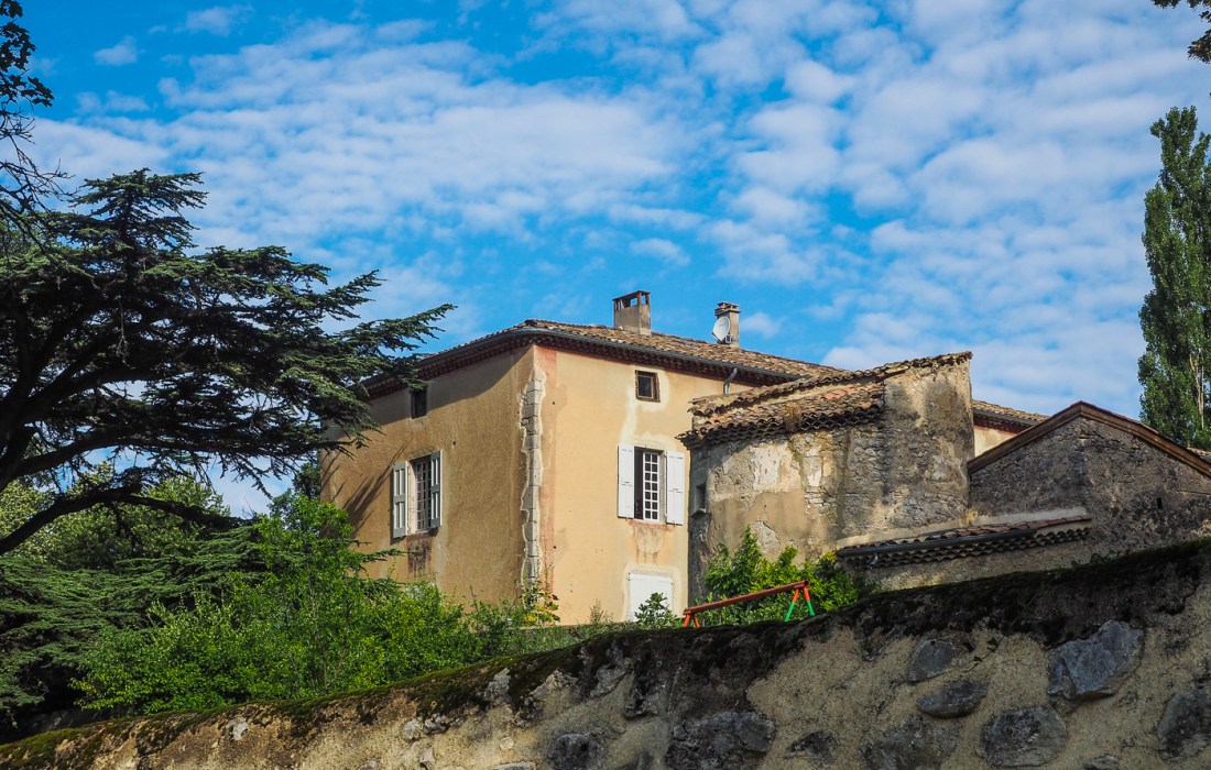 Danièle ne voulait pas rater le stage d’AÏkido du 21 au 25 juillet organisé à Die par la sympathique équipe du Club de Die. Nous logeons au Camping le Riou Merle, les arbres nous protègent du soleil. Le matin sur le tatami pour Danièle, ou en promenade avec le chien pour moi, l’après-midi sieste et lecture à l’ombre. Et le soir nous retrouve sur les petits chemins, le long du canal d’irrigation dominé par cette belle demeure ancienne aperçue derrière ses hauts murs.