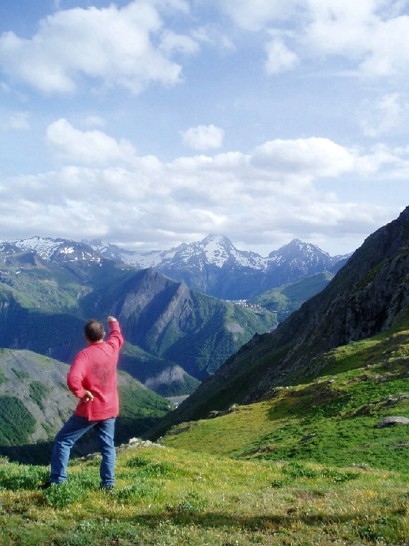 au Col de Sarenne. Au nord, les sommets des grandes Rousses, Le Pic Blanc ( 3327m) en face de nous.
