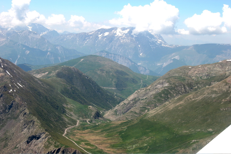 Le jour du départ, sur les conseils de nos hôtes, nous sommes passés par le col de Sarenne, direction plein Ouest vers l’Alpe d’Huez. La Sarenne naît ici au pied du glacier éponyme, elle suit une vallée ouverte à la pente douce avant de s’enfoncer dans les fameuses gorges de Sarenne qui ont offert à la station une des pistes les plus longues du ski alpin : 1830 m de dénivelé depuis le Pic Blanc, 16 Km de long.