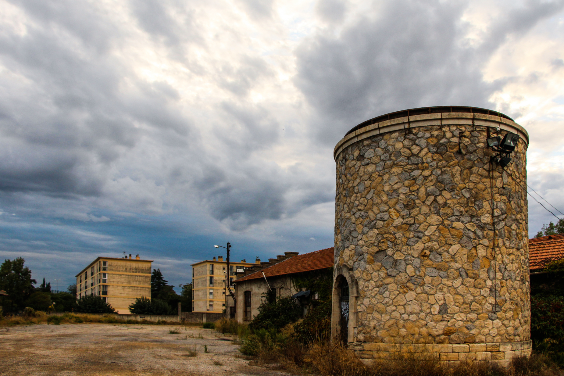 A part une papeterie encore en marche, on ne voit plus que friches industrielles, hangars abandonnés, cheminées inutiles. C’est le paradis des herbes folles et des grapheurs. Les multiples voies de chemin de fer rouillées sont tournées vers le sud, la Camargue, une ligne fermée depuis 1958 avec la fin de la Compagnie des Chemins de Fer de Camargue qui desservait Salin de Giraud et Les Saintes-Maries de la Mer. Zone industrielle, gare de triage, entrepôts et ateliers de réparation, il ne reste que quelques vestiges au bord de la ruine. Entre les usines et la voie rapide, des HLM un peu décatis résistent à la désertification.