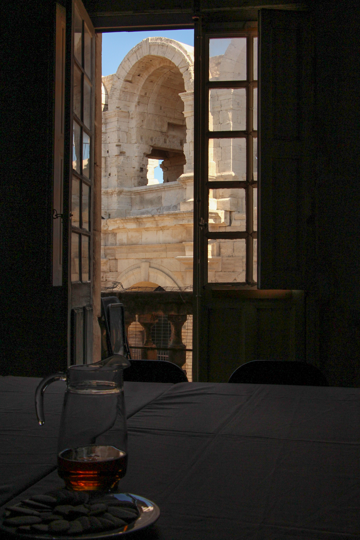 Avec notre camping-car, nous sommes installés à l’aire de service de Trinquetaille , sur la rive droite du Rhône, en face de la rive « noble » de Arles, le coeur de la cité avec ses vestiges romains et ses hôtels particuliers. Trinquetaille, à part ses immeubles coquets autour du cimetière, c’est un quartier populaire, ouvrier où s’exposent les stigmates de la ville industrielle.