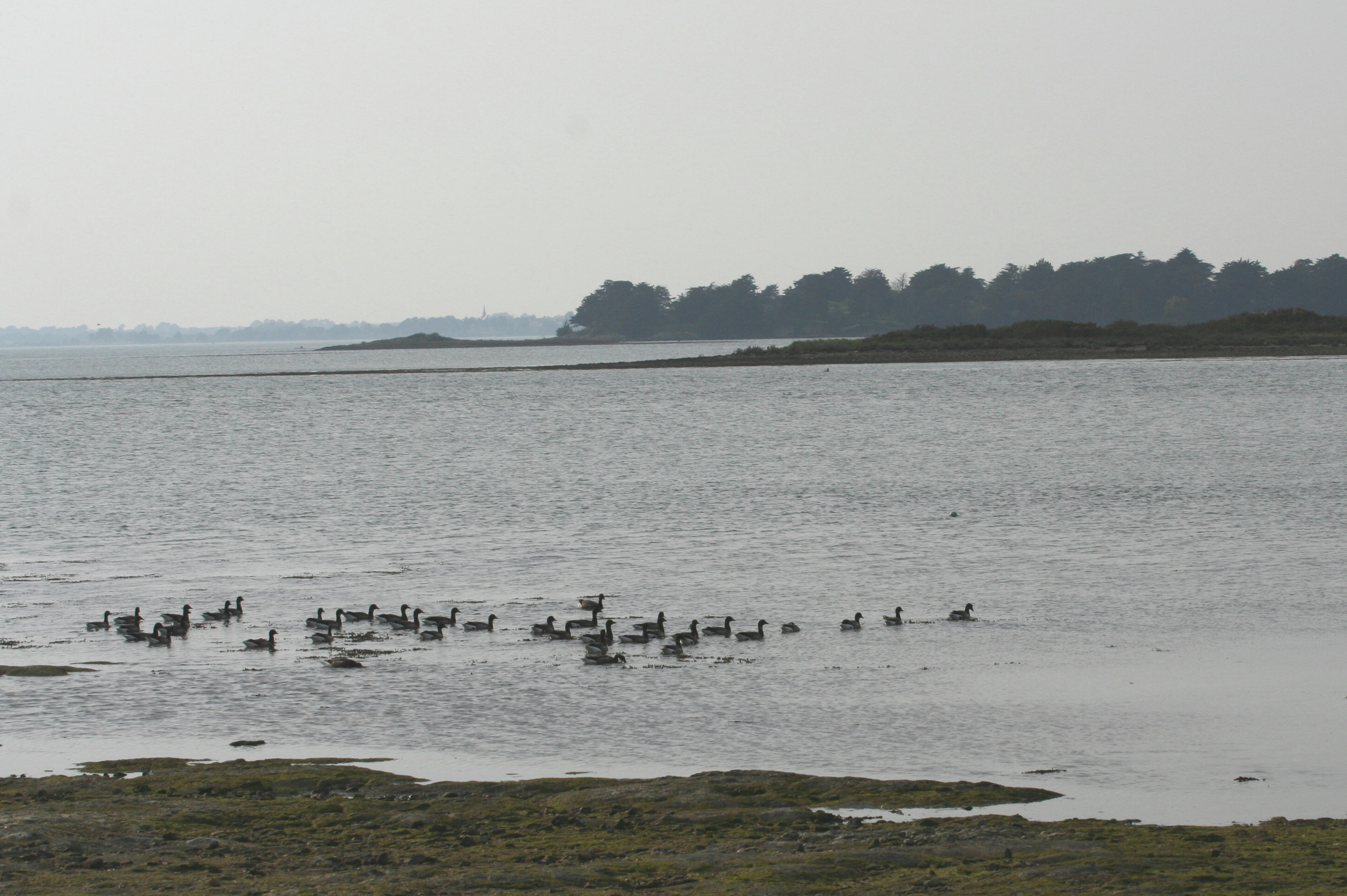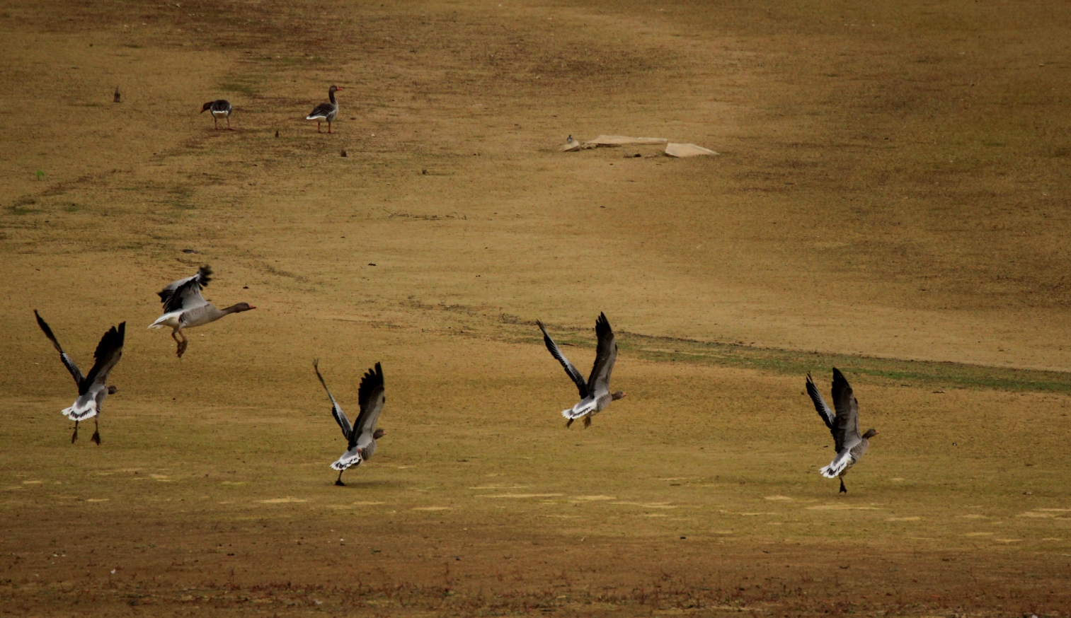 Seules les oies cendrées sont à notre portée ; elles broutent en petites troupes peu farouches en bas de la digue. Difficile de les approcher tout de même et si le chien se montre c’est l’envol immédiat !