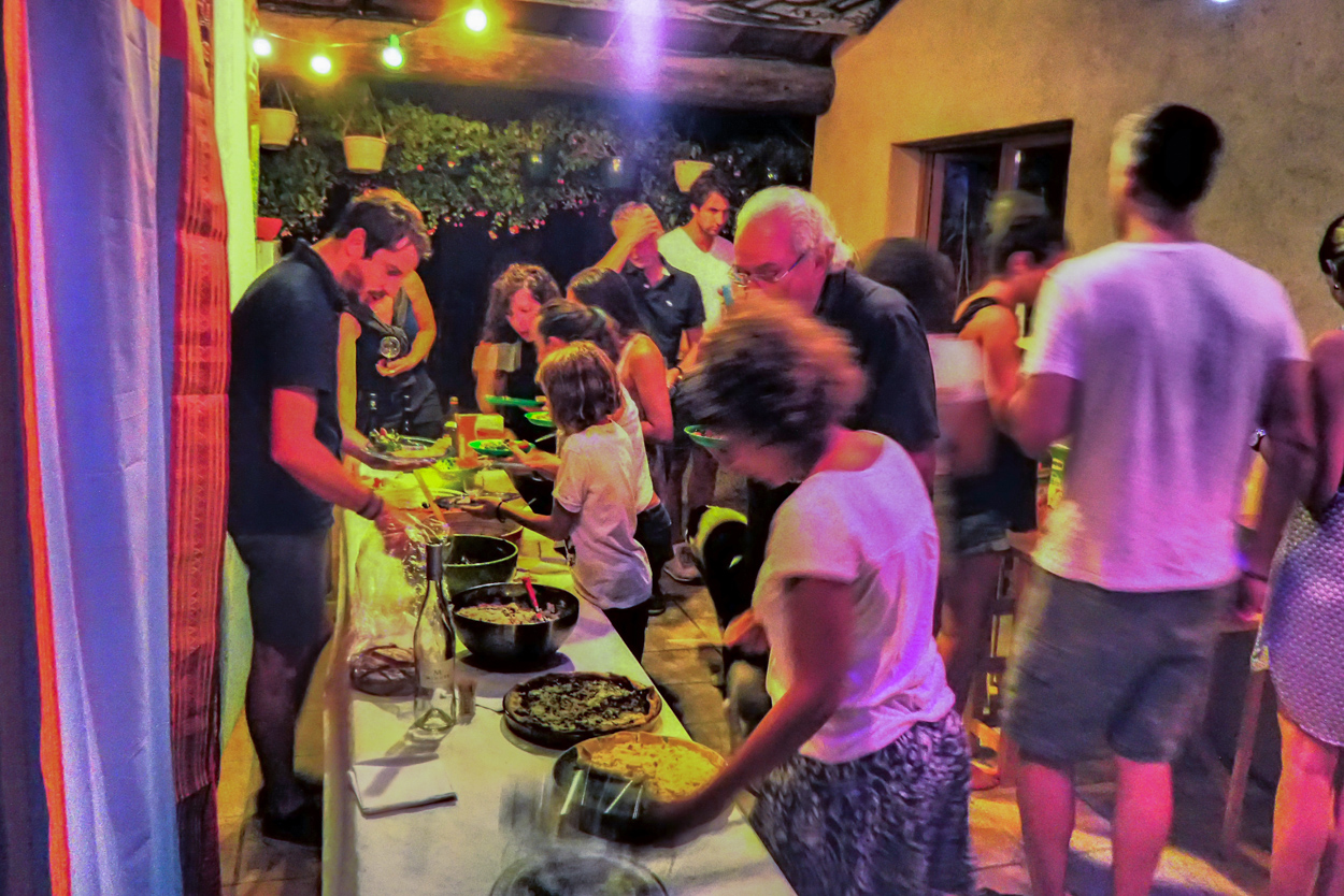 Mais l’heure tourne et la nuit s’annonce avec la venue des visiteurs du soir. Le buffet est maintenant dressé avec les mets que chacun a amené – le choix est difficile.