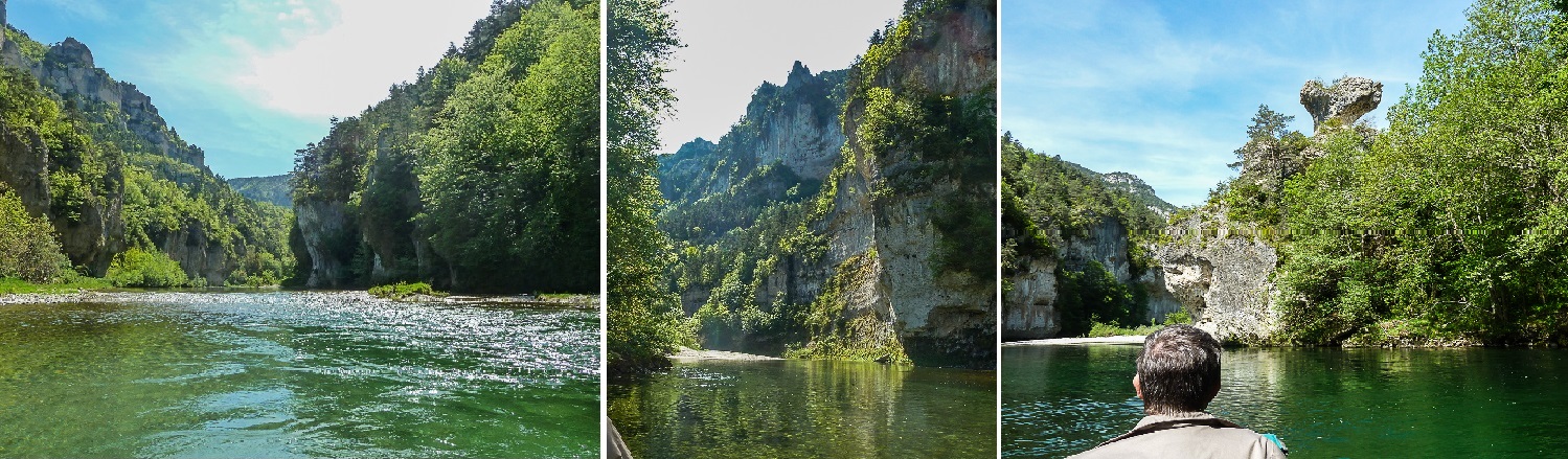 Le lendemain , le beau temps permet d’envisager une expédition sur le Tarn. Les barques et les canoés pour la descente du Tarn à partir de la Malène. La descente en barque , conduite par un batelier-expert (permis de navigation et permis de transport de personnes) nous permet d’apprécier ce mode de navigation traditionnel, du temps où la route n’existait pas. Sans moteur, mais avec deux bateliers munis de lattes, les anciens (voir