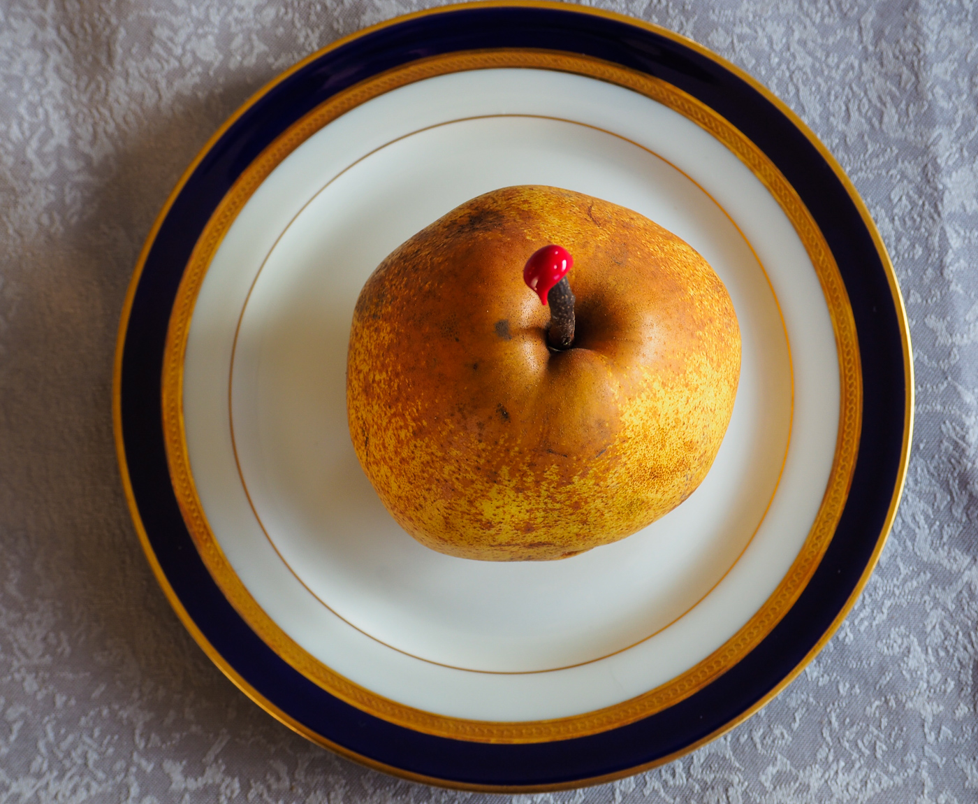 Tout le monde connaît la Williams, la Guyot, l’Abate qu’on trouve facilement dans les grandes surfaces ou les commerces spécialisés. Ce sont des poires d’été qu’on consomme rapidement. Moins connues sont les poires d’hiver, récoltées plus tard et à conserver quelques semaines avant consommation. C’est tout un monde de saveurs, de textures qu’on découvre, chez quelques producteurs experts- on citera autour de nous Michel Pinet à Lissieu et Franck Décrenisse à Chasselay. Danièle a tenté de faire l’inventaire – et le portrait photographique – de ces merveilles conservées au fil des générations, et décrites dans des documents fort anciens.