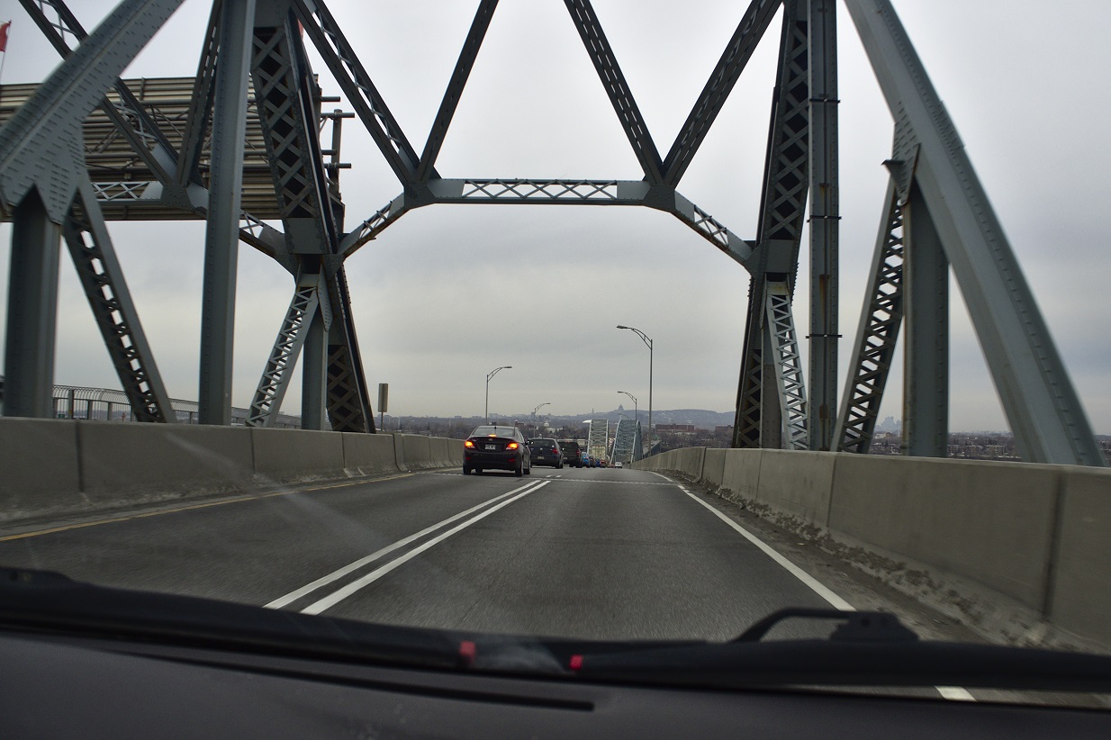 Mais il faut rentrer et retraverser le pont. Ici le pont Honoré Mercier (1934-1963).