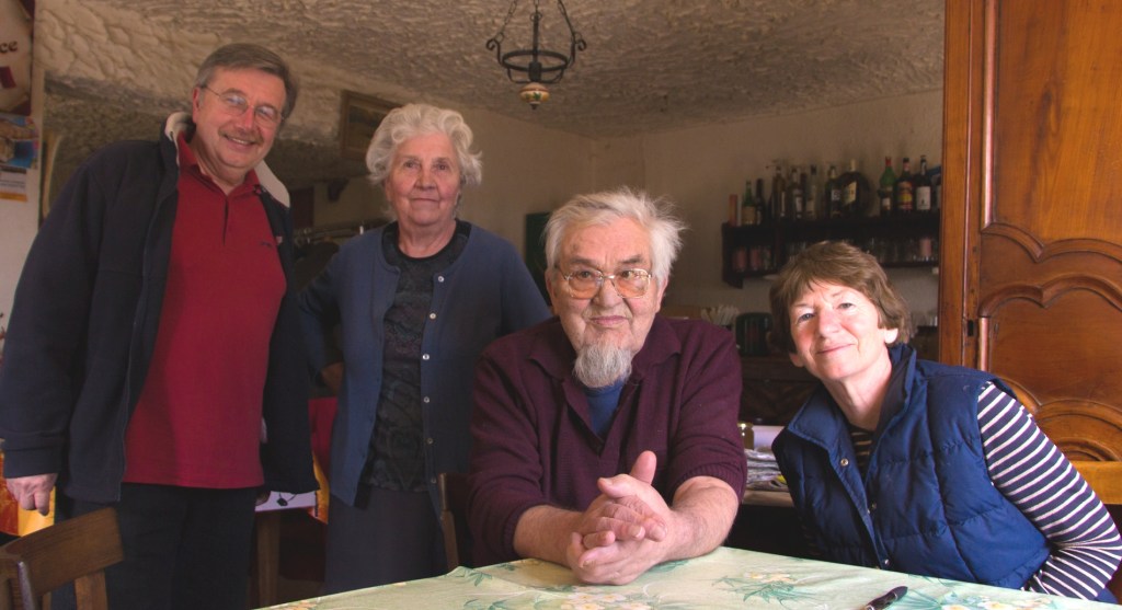 Première étape aux Cros, hameau d’Arconsat où réside Gilles le descendant d’une famille alliée à celle de Danièle. Ils posent tous les deux devant la maison familiale encore occupée par les parents de Gilles. Jean-François est intarissable sur l’histoire d’Arconsat, il décrit l’énergie et l’inventivité de ces familles engagés dans leur survie. Tous les moyens étaient bons : la contrebande de sel (six fois moins de gabelle en Auvergne qu’en Bourbonnais), le commerce ambulant des colporteurs (qu’on a vu partir jusqu’au Mexique), l’artisanat autour du bois et de la coutellerie. Autant de raisons au maintien d’une population rurale très importante malgré des conditions difficiles.